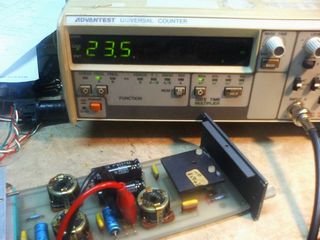 チョークコイルが二個に発振用のトランスとトランジスタ二個の構成で発振周波数は20K以上です。