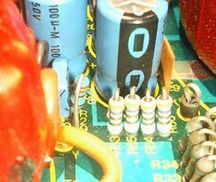 両面のプリント基板だとやはり部品をはずすのが一番です。縦型の抵抗の場合抵抗値も見やすく