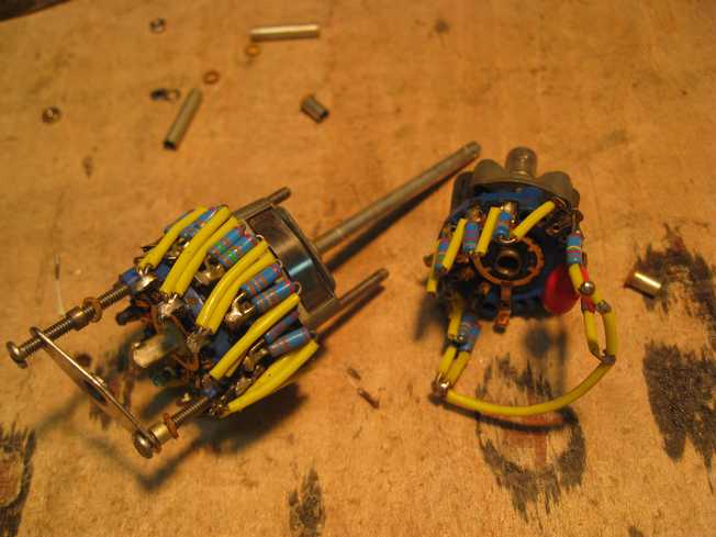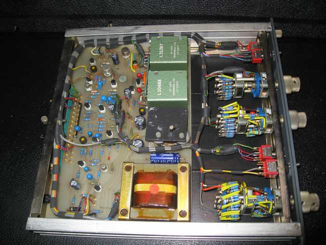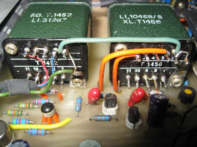 内部写真 上の二個の緑のトランスをマリンエアに交換します。