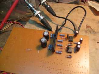 エミッタ抵抗を33オームとしたのでアウトのコンデンサーは470uFにしましたがまだまだ実験中です。。