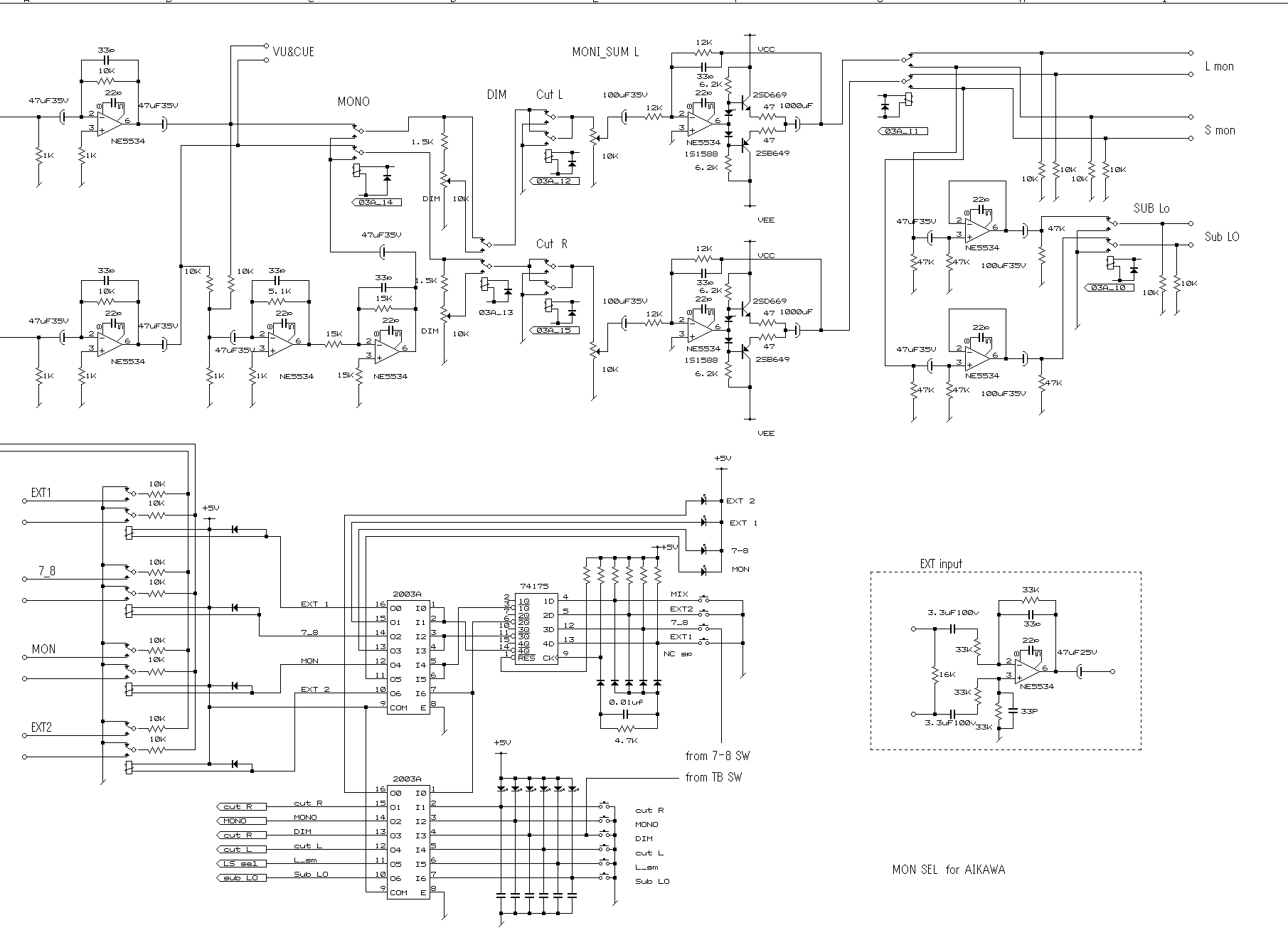 この部分はS-mixのインプットにも使っていますがOPアンプを使ったごく普通の回路です。