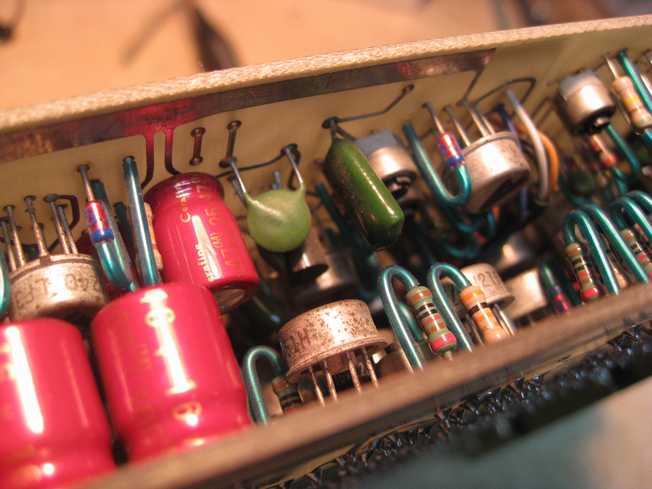 27個のOPアンプが付いています。抵抗はカーボンで当時プリント基板用として出回っていた片側に