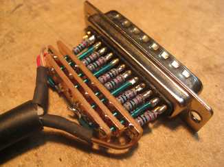 D-subタイプはコネクターの中に抵抗を入れて、XLRタイプはケーブル途中のアルミパイプの中に抵抗が入っています。